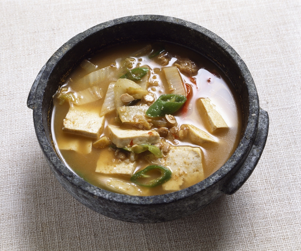 - 주재료 : 된장(시골재래전통된장, 시골재래우렁버섯된장) 2큰술(20g), 물 3컵(600ml), 고춧가루, 무 35g, 청양고추 1개(10g), 애호박 1/9개(30g), 두부 50g, 팽이버섯20g