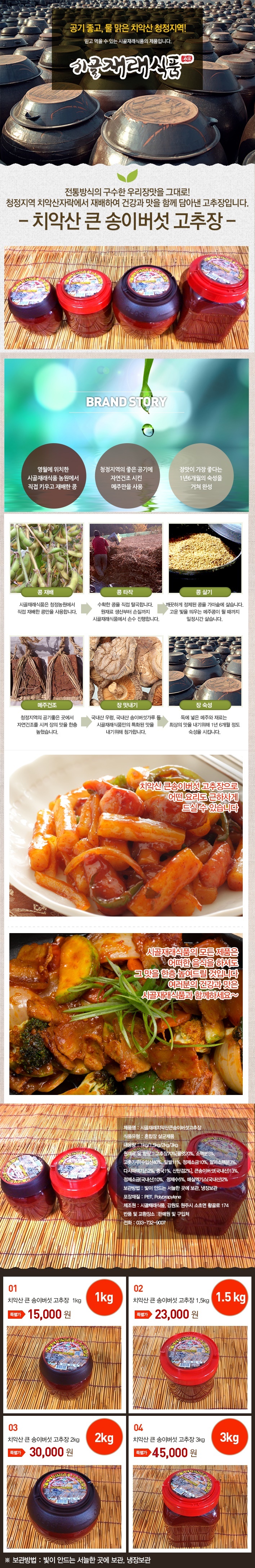 시골재래 치악산 큰 송이버섯 고추장(1.5kg)*치악산특산품*큰송이버섯가루첨가 담백한맛